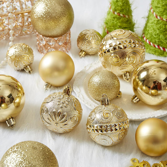 Christmas Ball Ornaments - 30Pcs Shatterproof Christmas Ornaments Set Plastic Hanging Christmas Decorations for Xmas Tree Holiday Party Decor, 6 Styles in 4 Sizes (Gold)