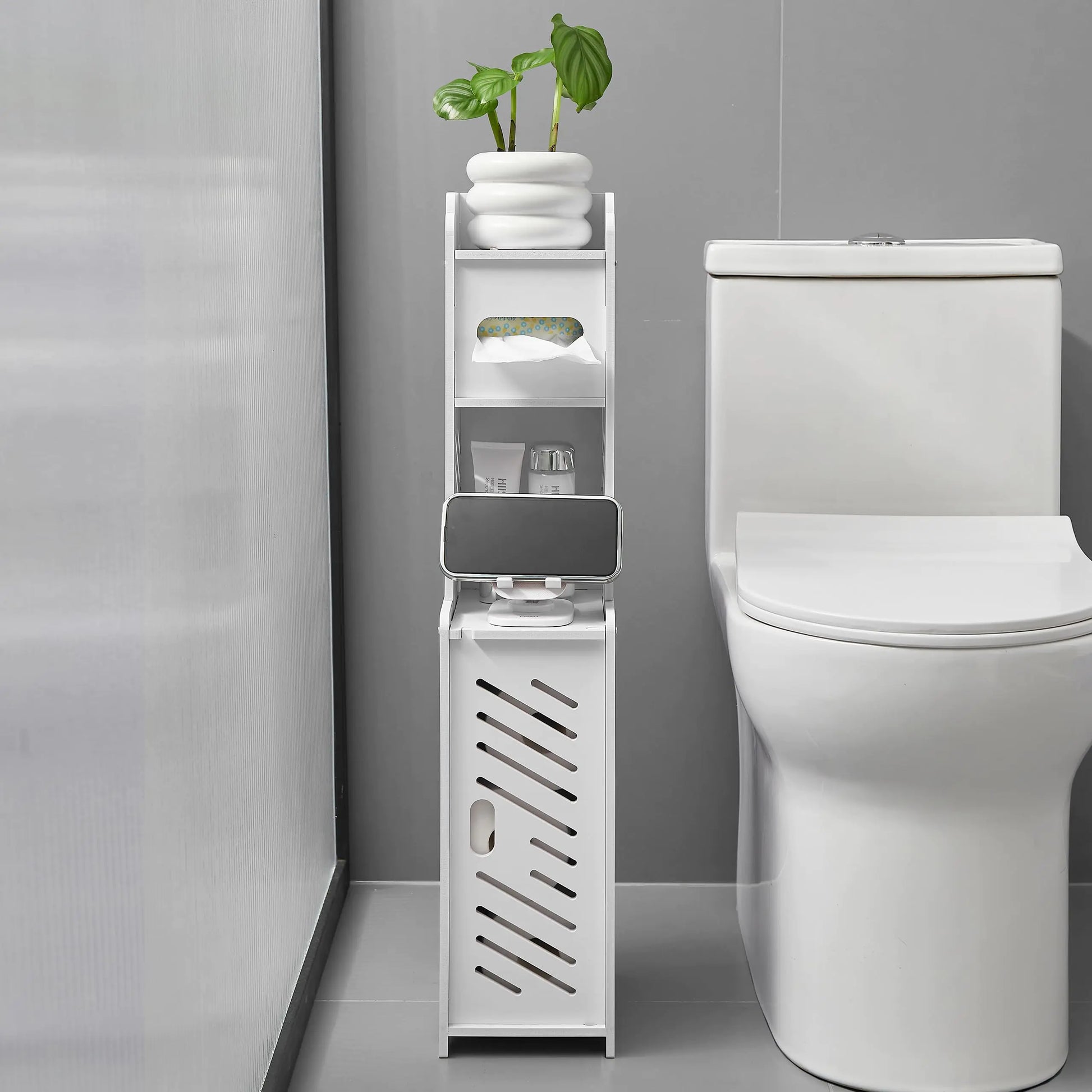 White Toilet Paper Stand with Storage